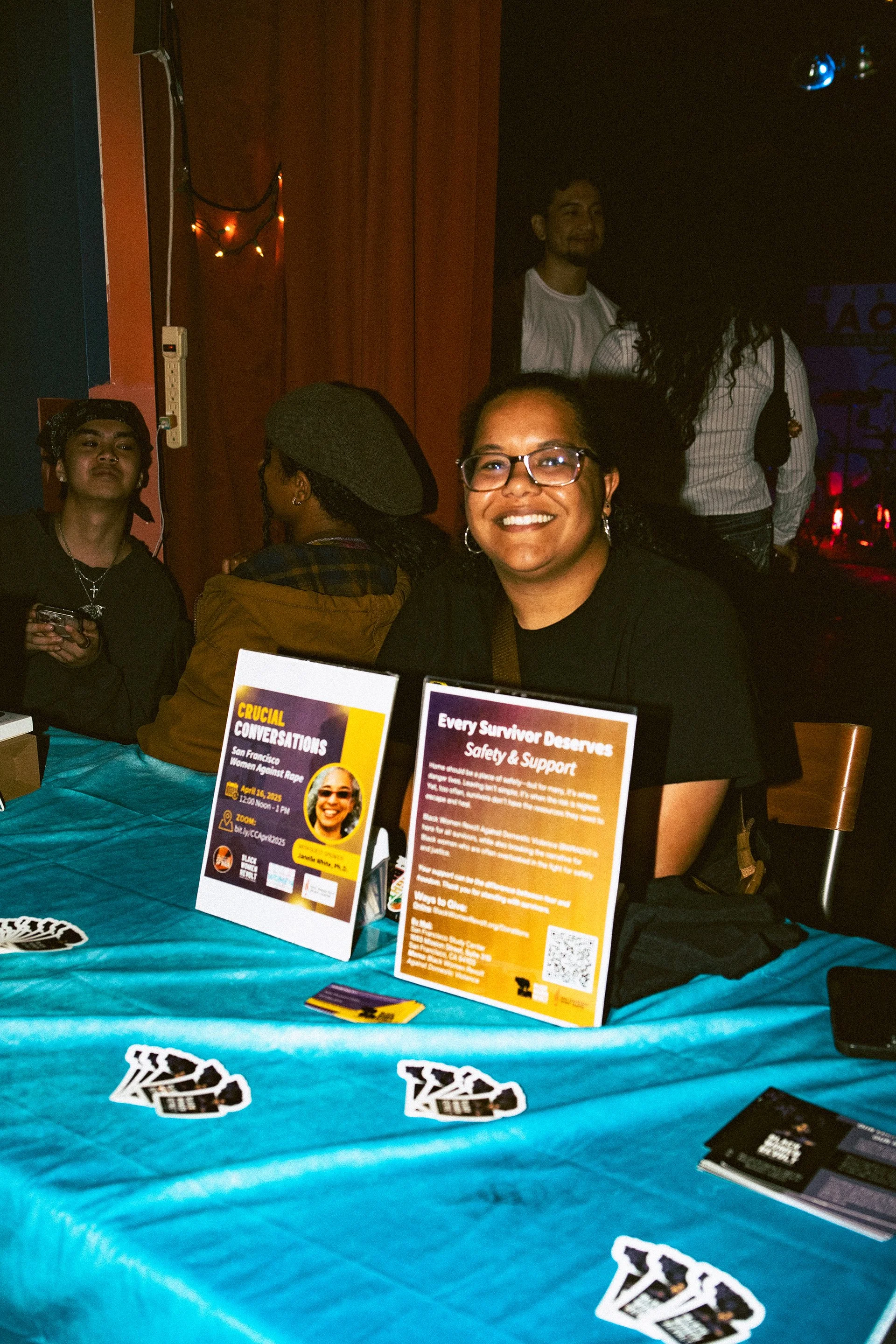 Tasha’s live performance was followed by DJ sets by 4DHILA, DJ SweetMeat, IllumiNATi, Estrella, and BRIIZV, all femme or queer identifying Bay Area DJs. Coordinating the DJs, vendors and logistics was one of the hardest parts of organizing the event, according to Sarah. Sarah and Adhila were able to work closely with Zay Bishop, who works with Bissap Baobab, in order to plan the event.